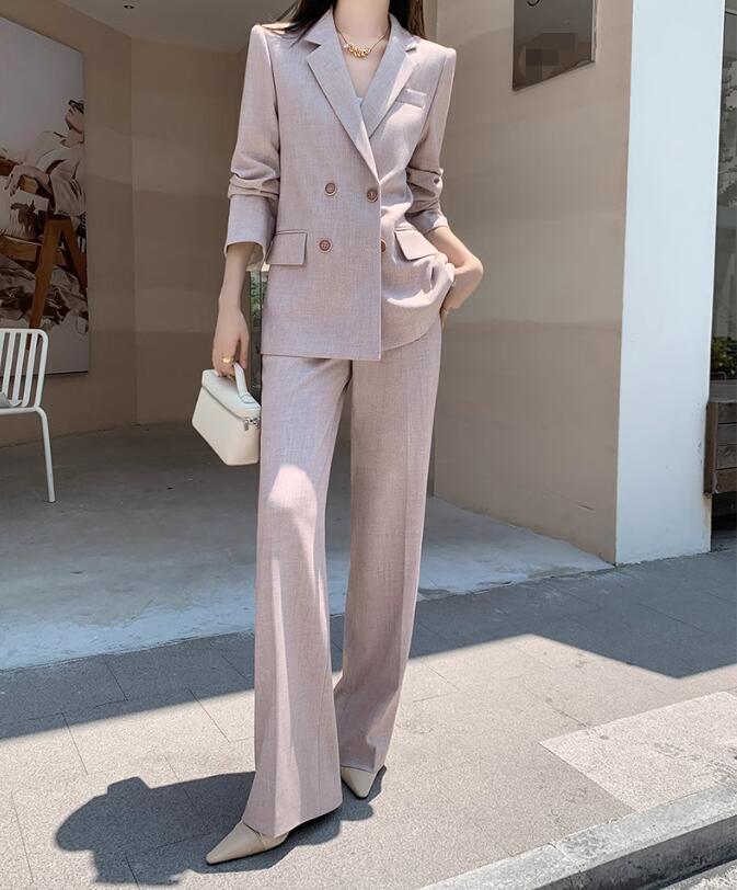 品質良い レディースビジネススーツ 通勤 OL 結婚式 2点セット 「ロング丈コート+ガウチョパンツ」パンツスーツ ダブルスーツ 制服 フォーマル 着痩せ リクルートスーツ カジュアル 司会 宴会 女