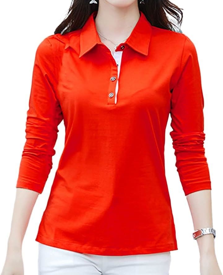 スリージョイ ポロシャツ 長袖 トップス 襟付き スリム カジュアル ボタン レディース(レッド/Bタイプ, XL)