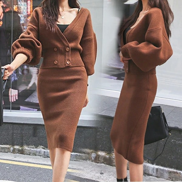 ニット セットアップ レディース スカートセット 秋 冬 ニットセーター 前開き タイトスカート スリット入り ニット カーディガン ドルマンスリーブ レトロ エレガント セクシー ニット 上下セット