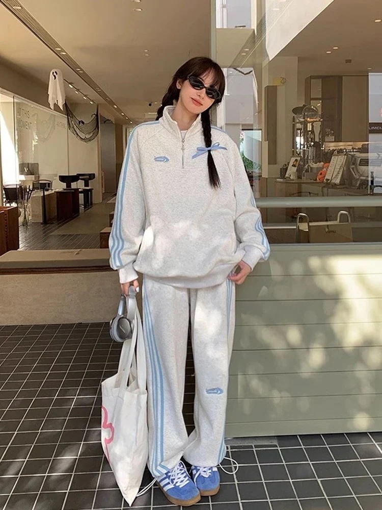 24 韓国 かわいい 2点セット 厚手裹起毛レディース 長袖アウターレトロ黑白上下ハーフサイズ丈トップスカジュアルスポーツファッション系通学学生袖お出かけアップシルエットサイドトラック羽織8
