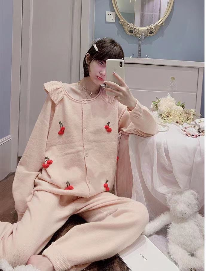 Hot!!!ルームウェア モールニット 上下セット レディース 秋 冬 パジャマ 部屋着 暖かい 体型カバー 冬用 ふわふわ ボーダー 可愛い 長袖 ロングパンツ もこもこ