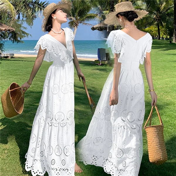 【送料無料】リゾートワンピース レディース サマードレス ワンピース Aライン ハワイ 沖縄 旅行用 大人 20代 30代 40代 可愛い お洒落 無地 ふんわり フェミニン 薄手 ホワイト 白