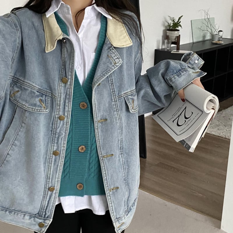 韓国ファッショント ニュースタイル おしゃれ 流行り ゆったり百掛けデニム トップス ショット丈 裏起毛 厚手 中綿コート 人気ボアアウター