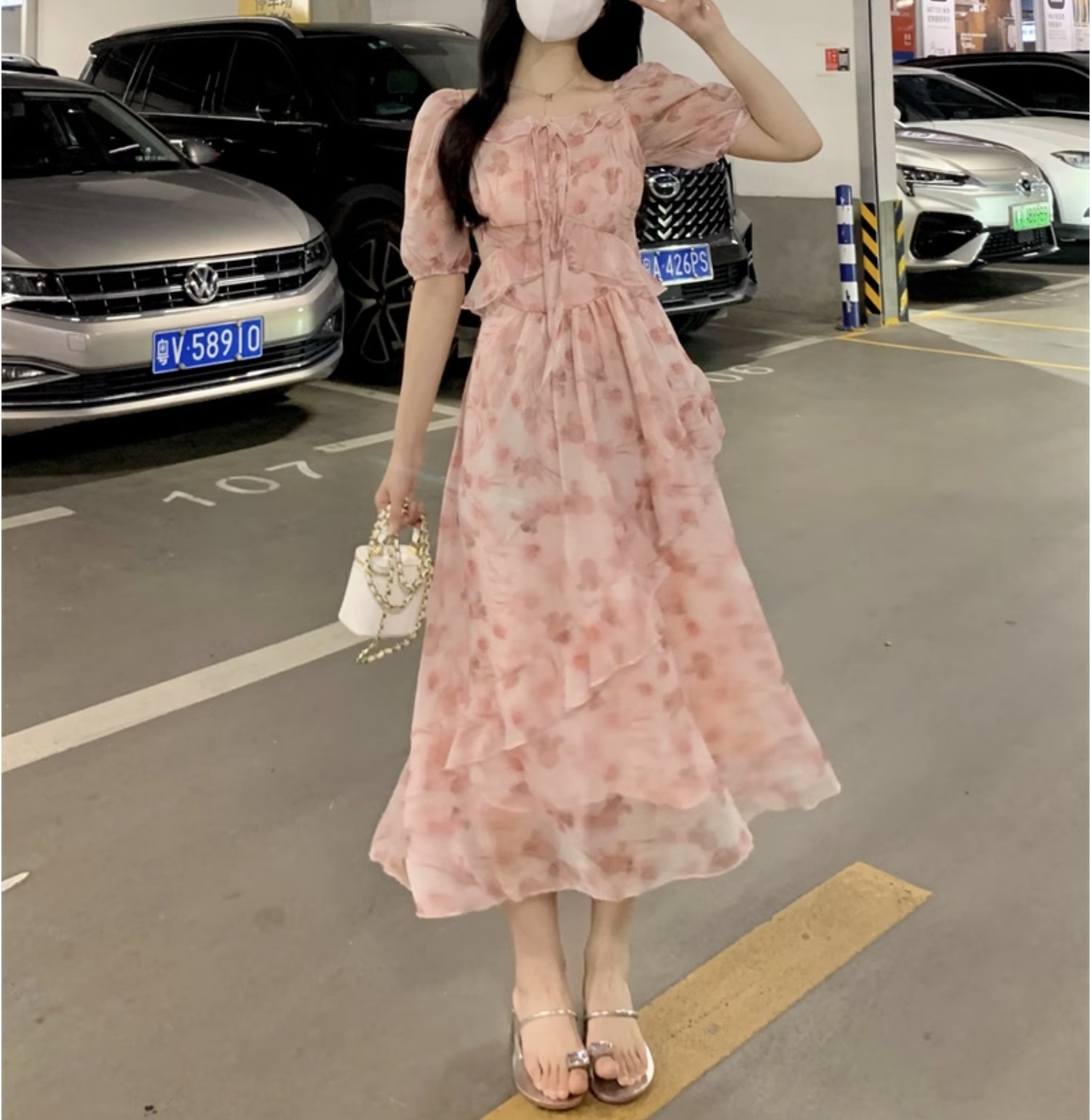 個性的 夏服 ワンピース ワンピドレス フレアワンピース ティアード ロジスワンピ ロング アンクル 袖あり 半袖 五分袖 パフスリーブ フレアスリーブ ボウタイ 襟付き フレア セミフレア