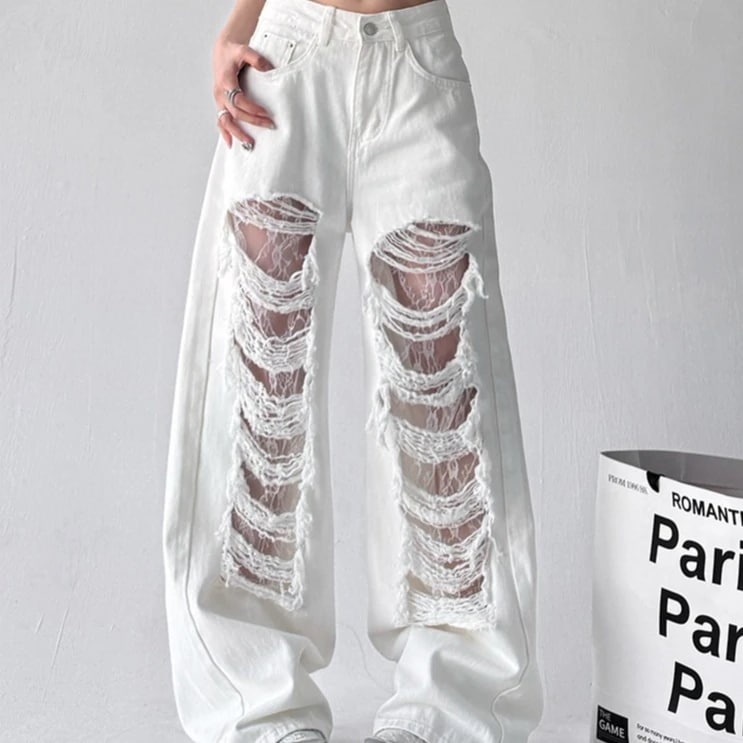 【急速出荷!】25 デニムパンツ ボトムス ハイウエスト ジーンズ K-PP ストリートファッション系モップ韓国風ファッション練習ジーンズ シルエットゆったりレッグレディースカジュアルジーパン衣装
