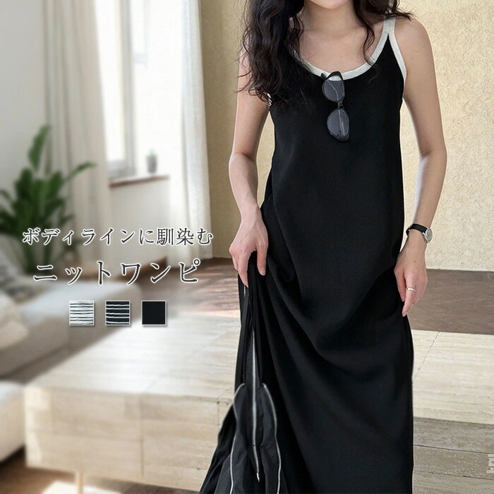【20点セット】【送料無料】サマーニット ワンピース レディース ノースリーブ キャミ キャミワンピース ロングワンピース ボーダー ニットワンピース タンクトップ 袖なし ニットタンクワンピース 大