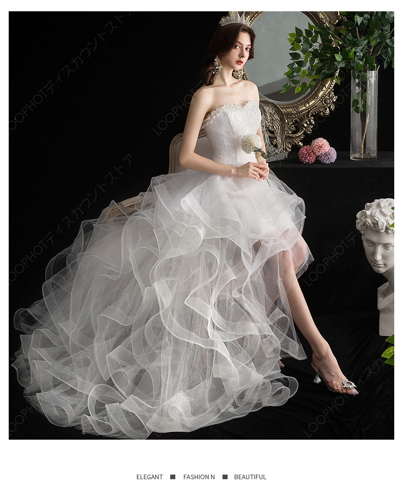 ウェディングドレス白 前撮り 二次会ウェディング ワンピース オフショルダー パーティードレス ドレス ふわふわ エンパイア 披露宴 演奏会 花嫁ロングドレス ブライダル レース 結婚式お呼ば